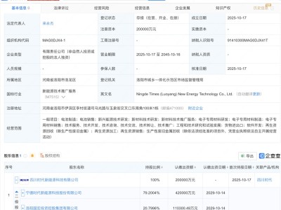 - 宁德时代在洛阳成立新公司,注册资本20亿