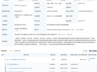 - 蔚来、宁德时代持股企业成立电池科技新公司