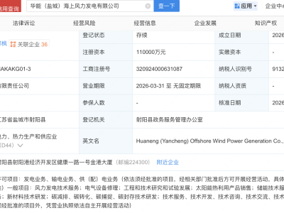 - 华能国际、悦达投资等成立海上风力发电公司,注册资本11亿