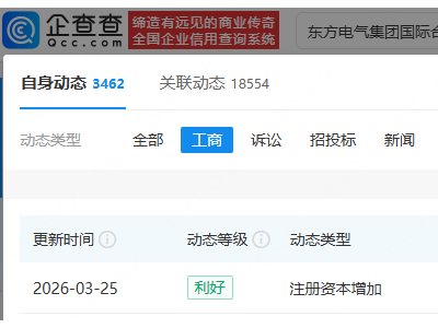 - 东方电气旗下国际合作公司增资至10亿元