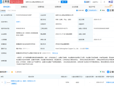 - 新疆有色集团成立铜业公司,注册资本4800万