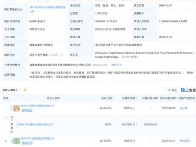 - 片仔癀等在漳州新设再生医学产投基金