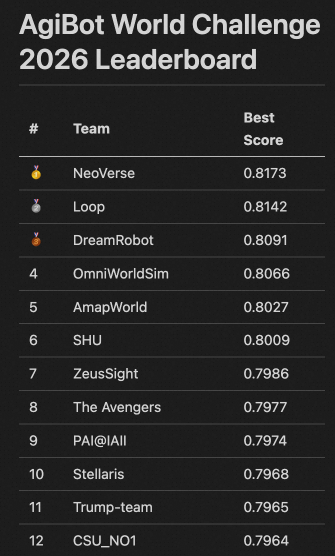 在近期举办的国际权威评测活动中,中国自主研发的Abot-world系列世界模型同时斩获Agibot World Challenge与World Arena两大赛事的冠军。此次评测吸引了谷歌、英伟达等全球科技巨头参与,中国团队在具身智能核心技术领域实现突破性进展,标志着我国在世界模型构建能力上已跻身世界前列。