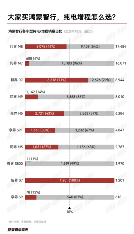 对家庭而言,自由出行不仅在于探索远方,也在于让日常的每一段路程都变得轻松惬意。相关统计显示,在问界M8的10月交付数据中,增程版占比54%,纯电版占比46%。两版车型,精准匹配不同家庭用户的出行场景。