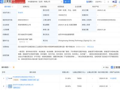 - 中创新航等成立新公司,含新能源汽车业务