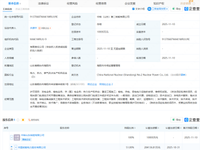 - 中国核电在山东成立核能新公司,注册资本1亿元