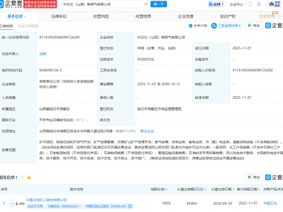 - 中国石化在山西投资成立煤层气公司,注册资本4.5亿