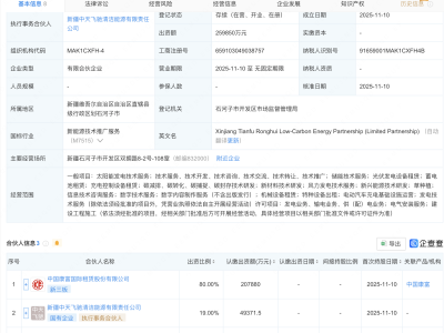 - 中国康富、天富能源等成立低碳能源合伙企业,出资额约26亿