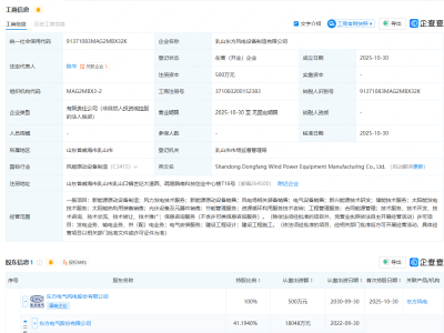 - 金风科技成立设备公司,含发电机及发电机组制造业务