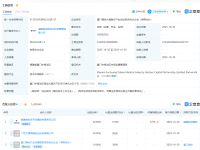- 福建投资集团等成立医疗产业创业投资合伙企业