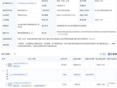 - 山东黄金集团新设矿业股权投资企业,出资额10亿