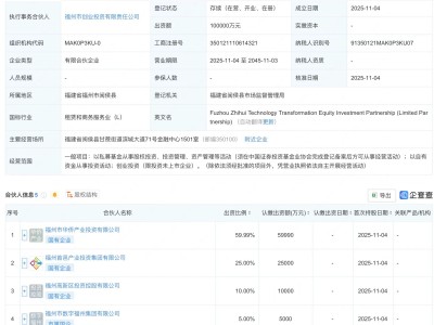 - 福州智汇成果转化股权投资合伙企业成立,出资额10亿