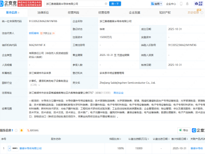 - 赛德半导体新设半导体子公司,注册资本1.5亿元