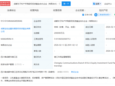 - 成都交子金控集团成立科产并购股权投资基金,出资额20亿