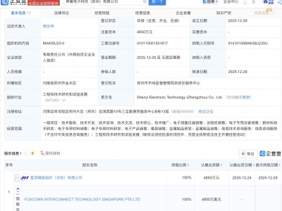 - 富士康在郑州投资成立电子科技新公司