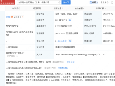 - 九鼎新材、江顺科技参股公司入股商业航天3D打印公司九宇建木