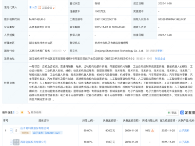 - 山子高科在浙江成立机器人科技公司,含多项AI业务