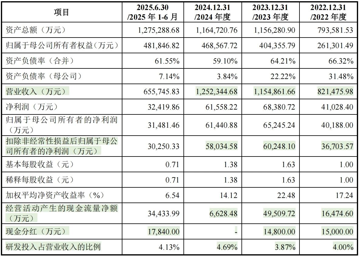 从财务数据来看,天海电子近年来表现出强劲的增长势头。2024年度,公司实现营业收入125.23亿元,扣非后归母净利润达到5.80亿元。进一步分析其营收结构,2022年至2024年,公司营业收入分别为82.15亿、115.49亿和125.23亿元,呈现出逐年递增的趋势。尽管2023年和2024年的营业收入同比增长率有所放缓,分别为41%和8%,但考虑到汽车行业的整体环境和市场竞争态势,这一成绩依然值得肯定。