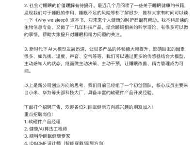- 原小米高管王腾创业新征程:聚焦睡眠健康领域