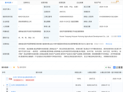- 汇源控股在湖南投资成立惠农农业发展公司