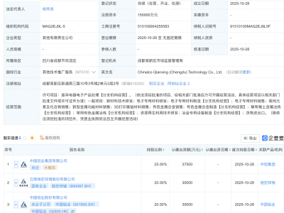 - 中国铝业、云南铜业等成立科技新公司,注册资本15亿