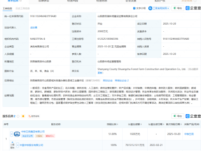 - 中国中铁等成立林场建设运营公司,含人工造林业务