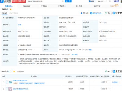 - 中通快递等在佛山成立物流公司,注册资本5亿元