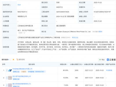 - 华电新能、远景能源等成立海上风电新公司