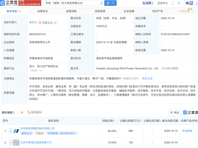 - 华电新能等成立风力发电新公司