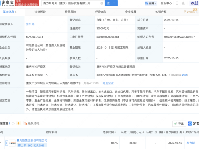 - 赛力斯在重庆成立海外国际贸易公司,注册资本3亿