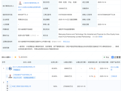 - 四川九洲集团、工银投资等新设股权投资基金,出资额10亿