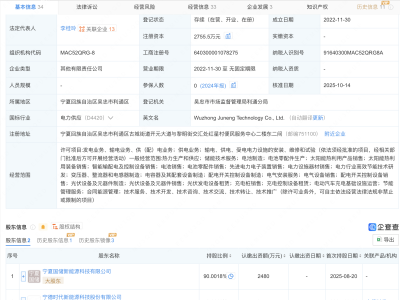 - 宁德时代入股吴忠市聚能科技公司