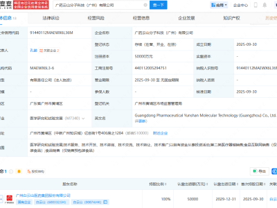 - 白云山投资成立分子科技公司,注册资本5亿元