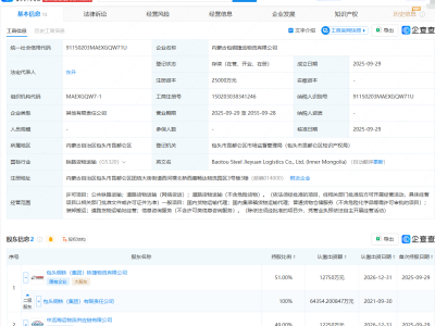 - 包钢集团等成立物流公司,注册资本2.5亿元
