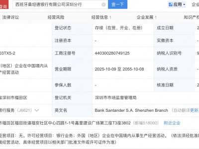 - 西班牙桑坦德银行深圳分行工商登记完成