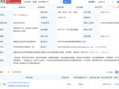 - 志特新材在西藏新设科技公司,注册资本1亿元