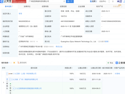- 三七互娱在广州成立网络科技新公司
