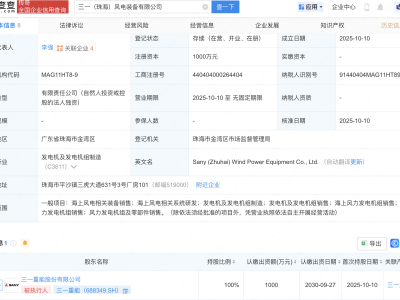 - 三一重能在珠海新设风电装备公司