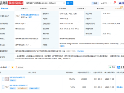 - 海南海澄投资等公司成立产业转型基金,出资额30亿