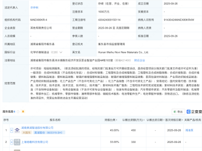 - 美湖股份等成立新材料公司,含汽车零部件业务