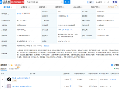 - 九号科技公司增资至14亿,增幅约155%