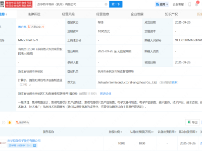 - 杰华特在杭州新设半导体公司,含集成芯片制造业务