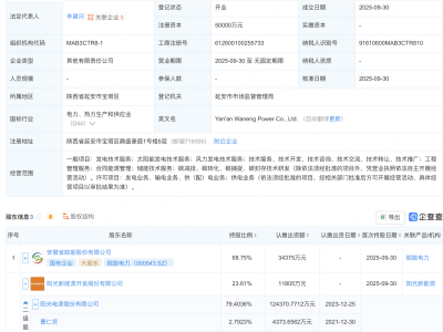 - 皖能电力、阳光电源等成立新公司,注册资本5亿