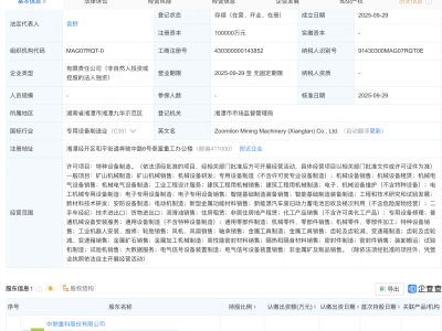 - 中联重科在湘潭成立矿山机械公司,注册资本10亿