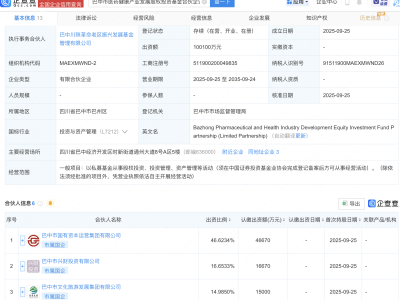 - 巴中市医药健康产发股权投资基金成立,出资额10亿