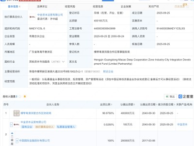 - 横琴粤澳深度合作区产城融合发展基金成立,出资额40亿