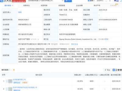 - 自贡数投机器人产投公司成立,含多项AI业务