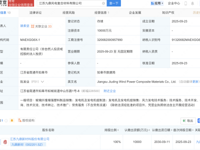 - 九鼎新材成立风电复合材料公司