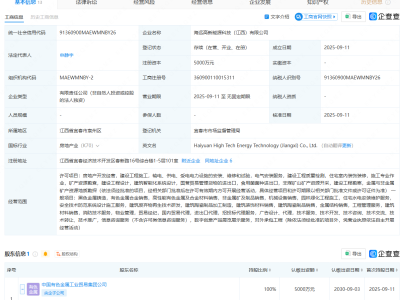 - 中国五矿在江西成立能源科技公司,注册资本5000万