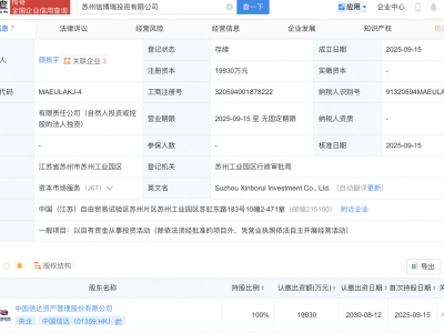 - 中国信达在苏州新设投资公司,注册资本约2亿